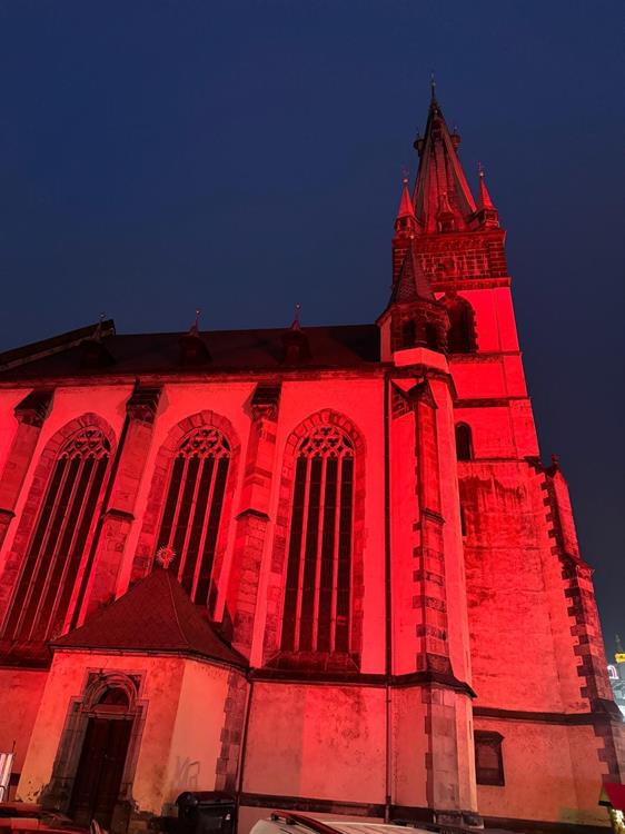 iniciativy je rozsvícené červené světlo symbolizující krev trpících pro