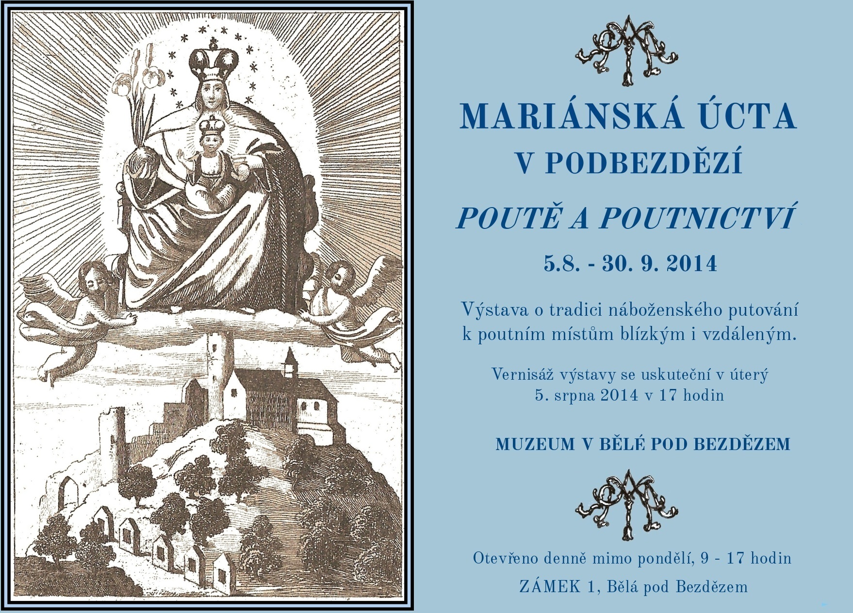 Druhá výstava, Mariánská úcta v Podbezdězí, Poutě a poutnictví, bude zahájena vernisáží 5. srpna 2014 v 17.00 hodin a je věnována zejména slavným mariánským poutím v tomto regionu. Kromě řady devocionálií, votivních darů, dárků z pouti a dalších mariánských památek lidové zbožnosti zde bude představen např. devoční obraz P. Marie Bezdězské z bělského kostela Povýšení sv. Kříže.
