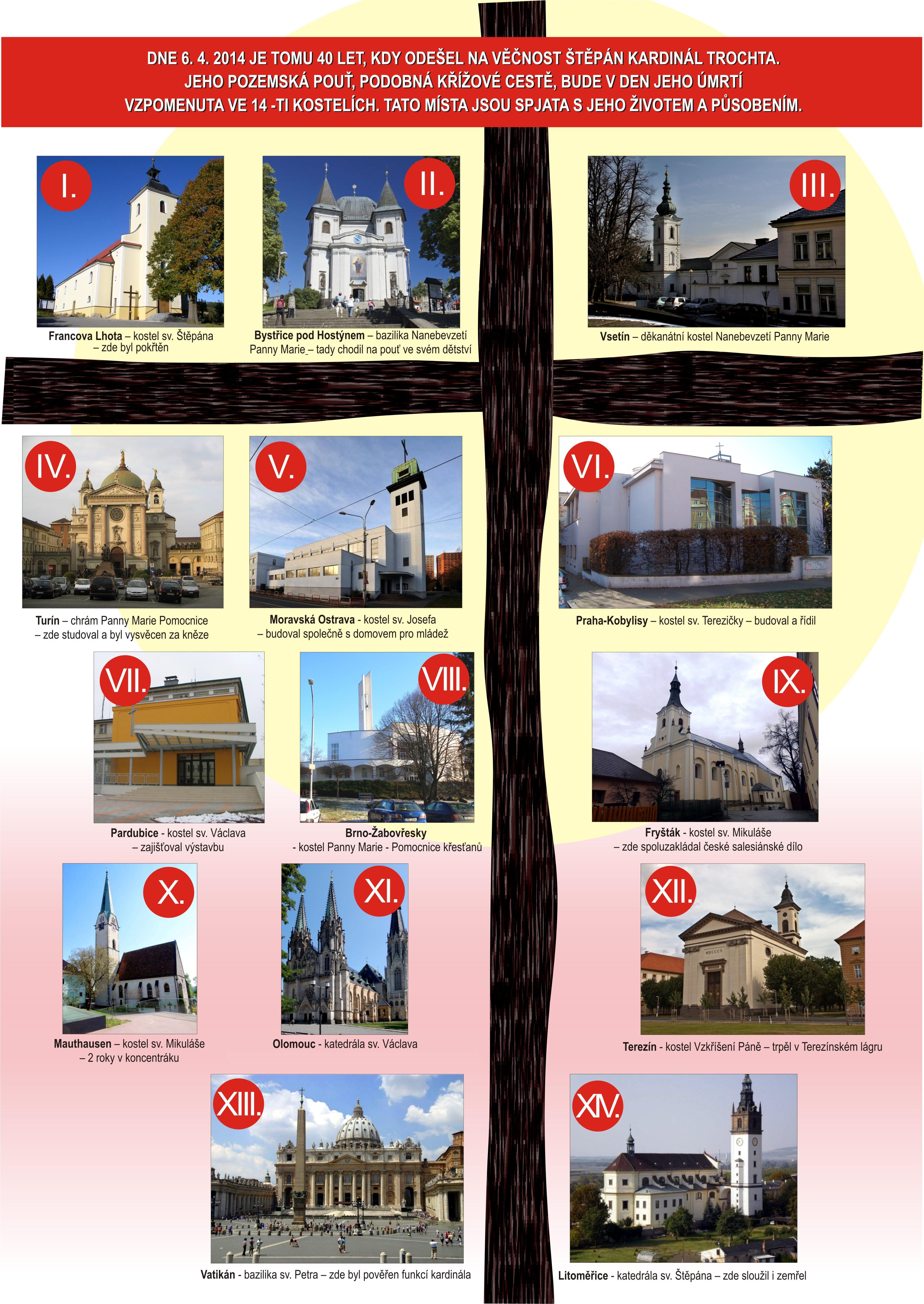 Zveme vás na pietní akci pořádanou u příležitosti 40. výročí úmrtí ThDr. Štěpána kardinála Trochty SDB, 17. sídelního biskupa litoměřického. Koná se v neděli 6. dubna 2014 v Litoměřicích. Pozvánka ke stažení v příloze. Zároveň zveřejňujeme plakát Valašské nadace s přehledem 14 míst spjatých s životem Štěpána Trochty, kde bude při mši svaté tato osobnost připomenuta.